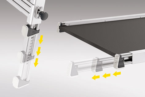 The innovative TP1 stairs platform, which has been designed to cater for the needs of DIY enthusiasts. TP1 can be used as a working platform or as a base for all folding steps and stepladders with up to four treads. A non-slip working surface integrated into a sturdy aluminium frame system offers a firm footing. This versatile product comes pre-assembled for immediate use, both inside and outside the home.