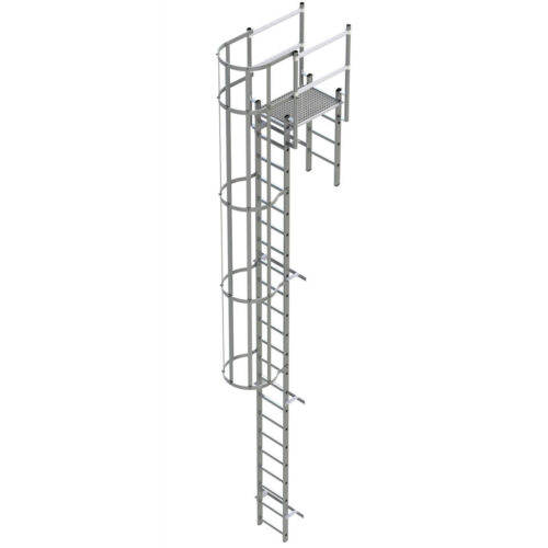 - Sturdy vertical ladder supplied with wall mounting brackets and hooped cage above 2.0m