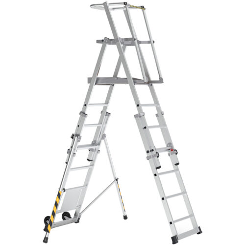 - Extra-large standing platform with robust aluminium toe board for maximum protection