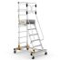 A range of industrial aluminium warehouse steps for easy, comfortable access to racking in the warehouse. Deep anti-slip treads and a large comfortable platform plus dual handrails give the user added confidence when climbing. Twin rear wheels contact the ground only when the front handles are lifted, thus ensuring the steps are totally static when in use, but are easily moved around the warehouse when required. Sizes between 3 and 14 tread are available to suit any situation.