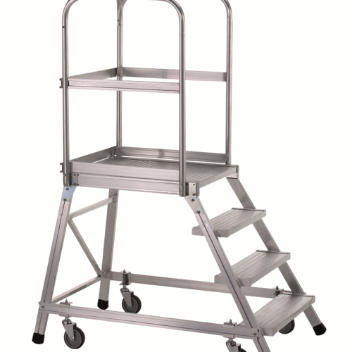 The platform width is a very generous 700mm and all tread surfaces have a punched and raised anti-slip surface for superb grip in any footwear and environment… all models feature kick plates to the closed side and end. The work area features 1.0m guardrails to the end and closed side and a removable chain to the open side. The work area is 700mm wide x 1600mm long, and with reinforced treads, will support a safe working load of 500kg.