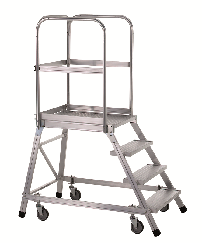 - Large standing platform 665 mm × 440 mm, with guard rail and knee bar.