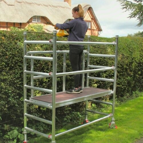 The HENCHMAN ‘Hi-Step’ MIDIÂ is our answer, designed to work effectively and safely in the garden and around the home. It is built to a very high standard using aluminium which makes it both lightweight and yet extremely strong…it weighs only 23kg. making it easy to move around …. and being aluminium, it will not rot, rust or corrode and requires no maintenance.