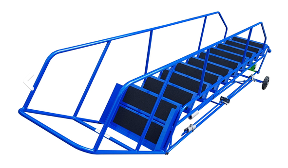 Tread size throughout the range is 550mm x 200mm and the top platform is 550mm wide x 400mm deep but can be increased. Treads are punched & raised for ultimate anti-slip resistance… all models are fitted with full length double handrails, kicking plate, fail-safe anti-ascent brake and large rubber tyred rear wheels as standard, while the optional features listed below can be specified at extra cost… call us on 0300 303 22 99 for a quotation on your special requirements.