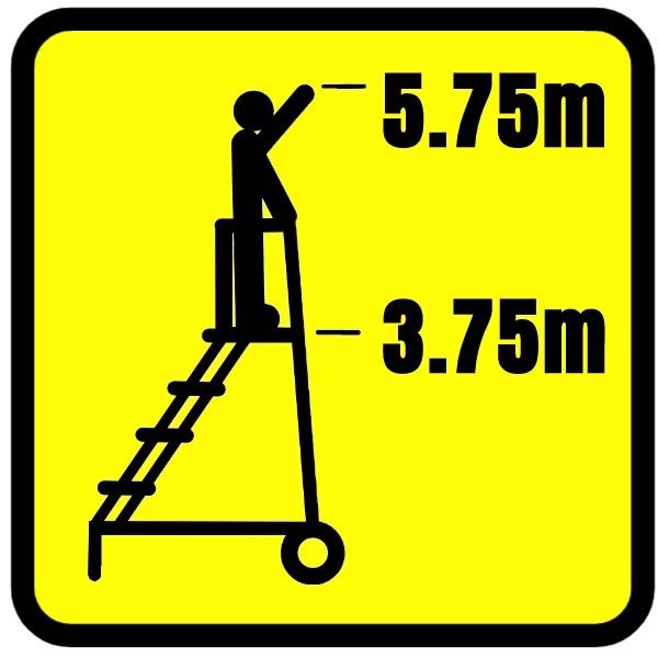 Tread size throughout the range is 550mm x 200mm and the top platform is 550mm wide x 400mm deep but can be increased. Treads are punched & raised for ultimate anti-slip resistance… all models are fitted with full length double handrails, kicking plate, fail-safe anti-ascent brake and large rubber tyred rear wheels as standard, while the optional features listed below can be specified at extra cost… call us on 0300 303 22 99 for a quotation on your special requirements.