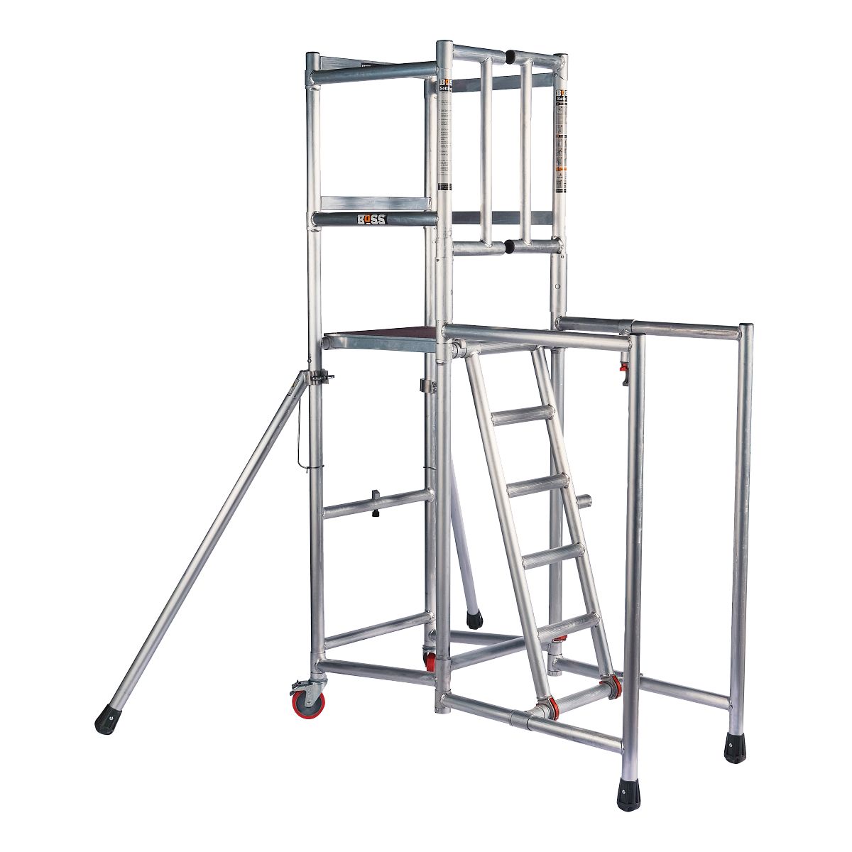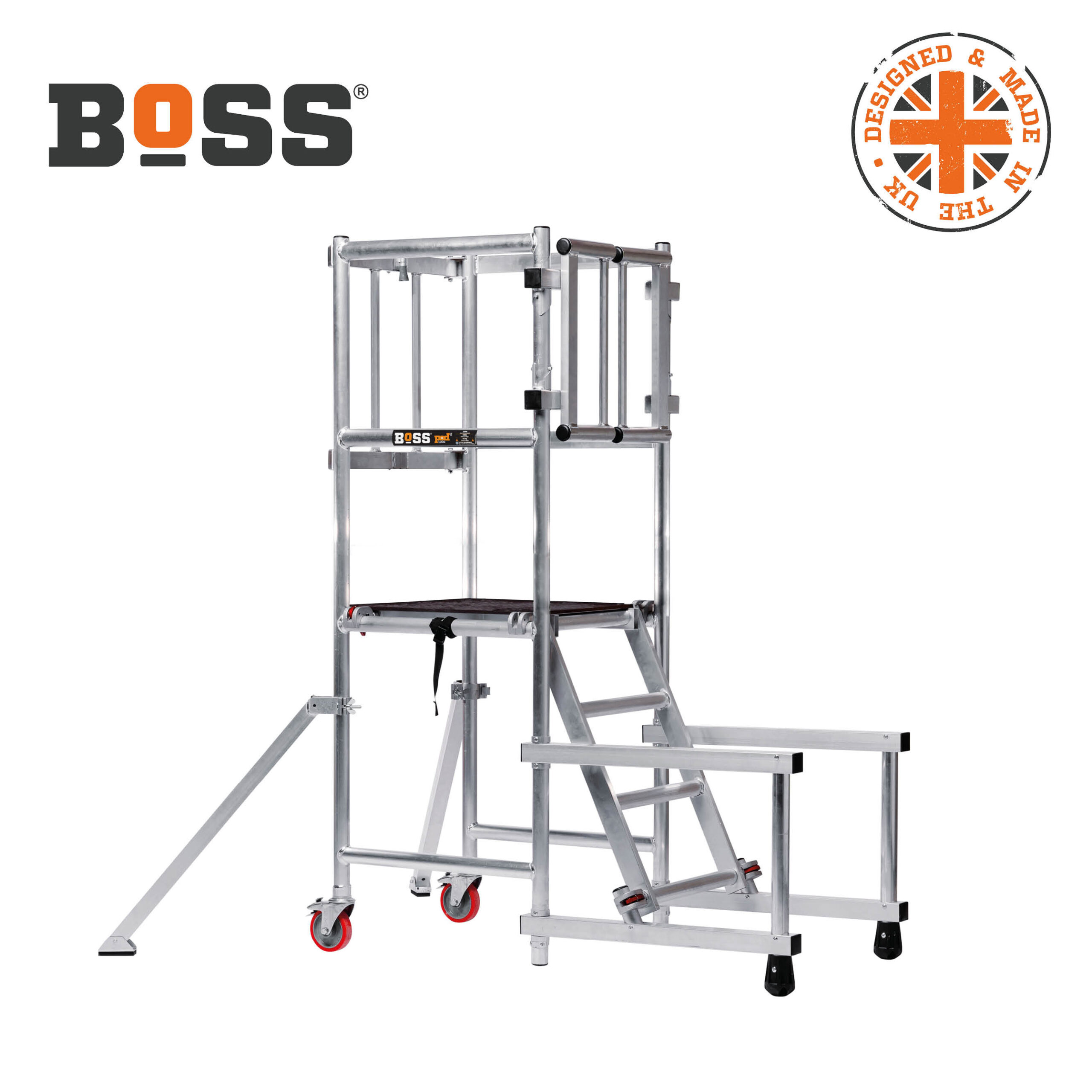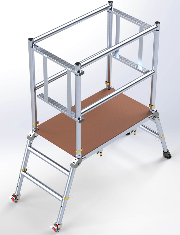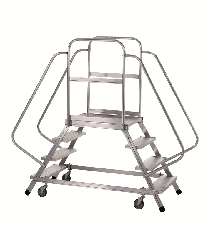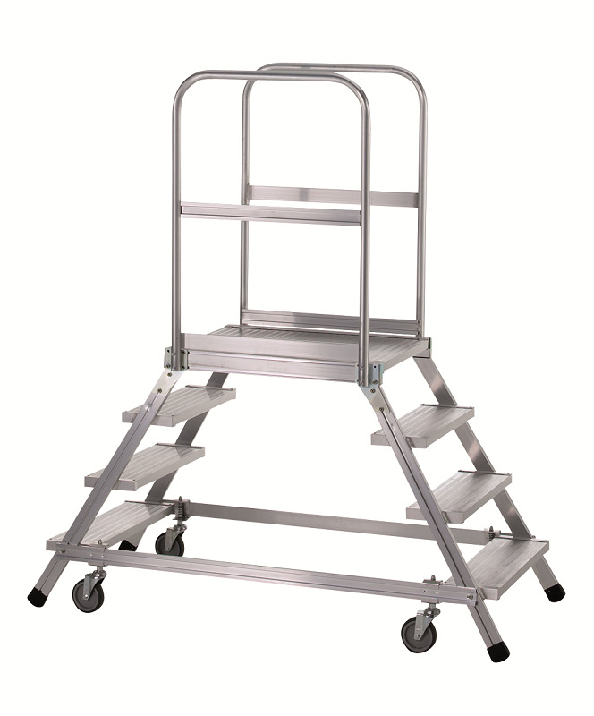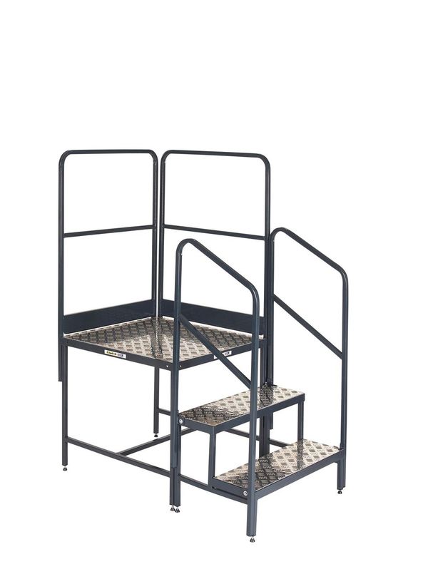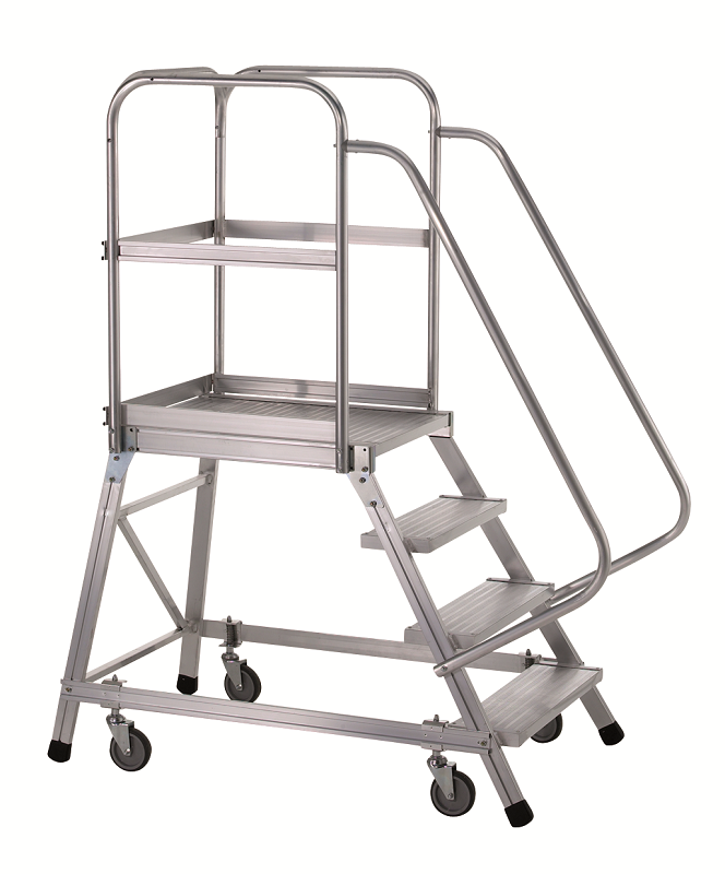 The platform width is a very generous 700mm and all tread surfaces have a punched and raised anti-slip surface for superb grip in any footwear and environment… all models feature kick plates to the closed side and end. The work area features 1.0m guardrails to the end and closed side and a removable chain to the open side. The work area is 700mm wide x 1600mm long, and with reinforced treads, will support a safe working load of 500kg.