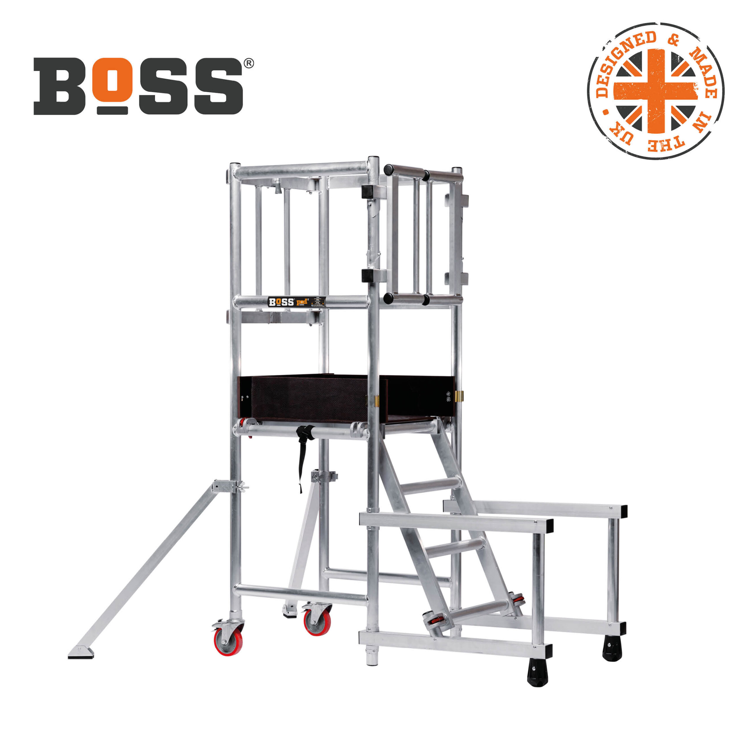The 32051000 BoSS QuickPod 1000 Podium is a lightweight but sturdy system designed as a single folding unit for easy storage and transportation. This compact podium features pivoting stabilisers and an integrated ladder for easy ascending/descending. The BoSS QuickPod provides an easy solution when working in small spaces. Certified to the latest BS8620:2016 safety standard.