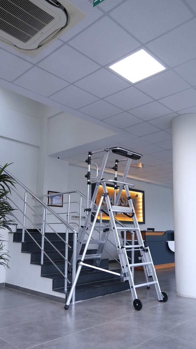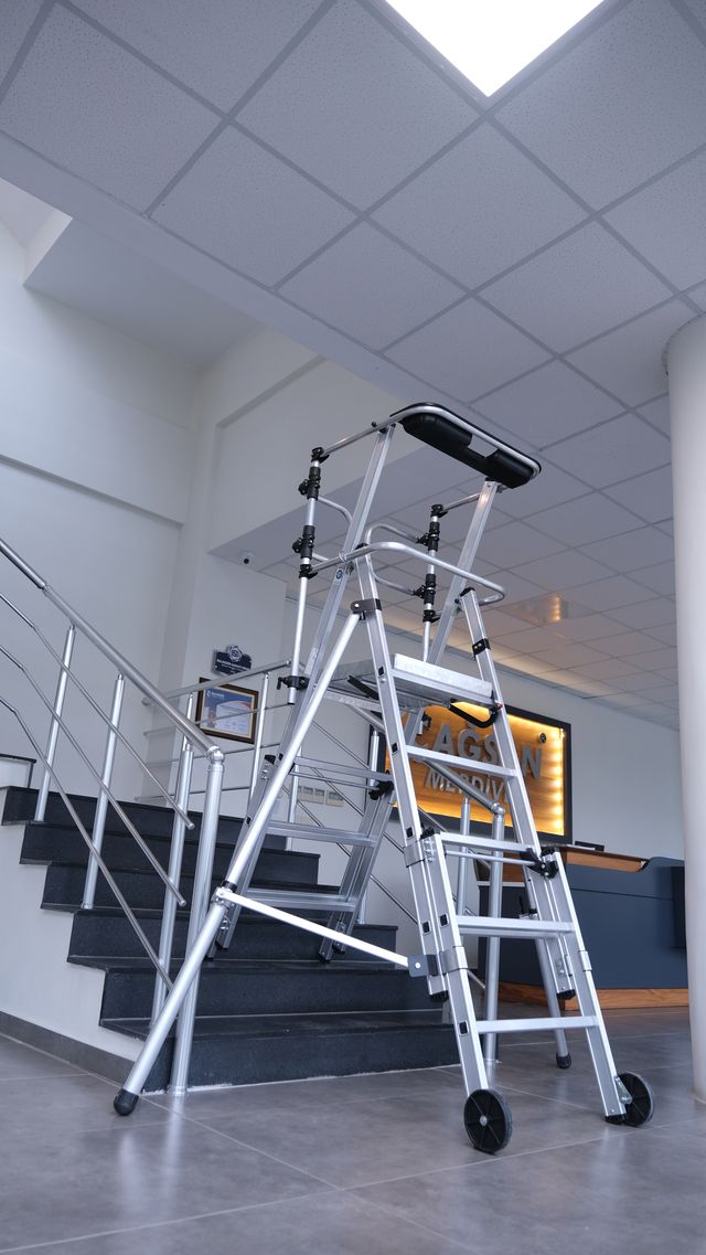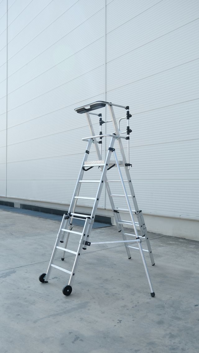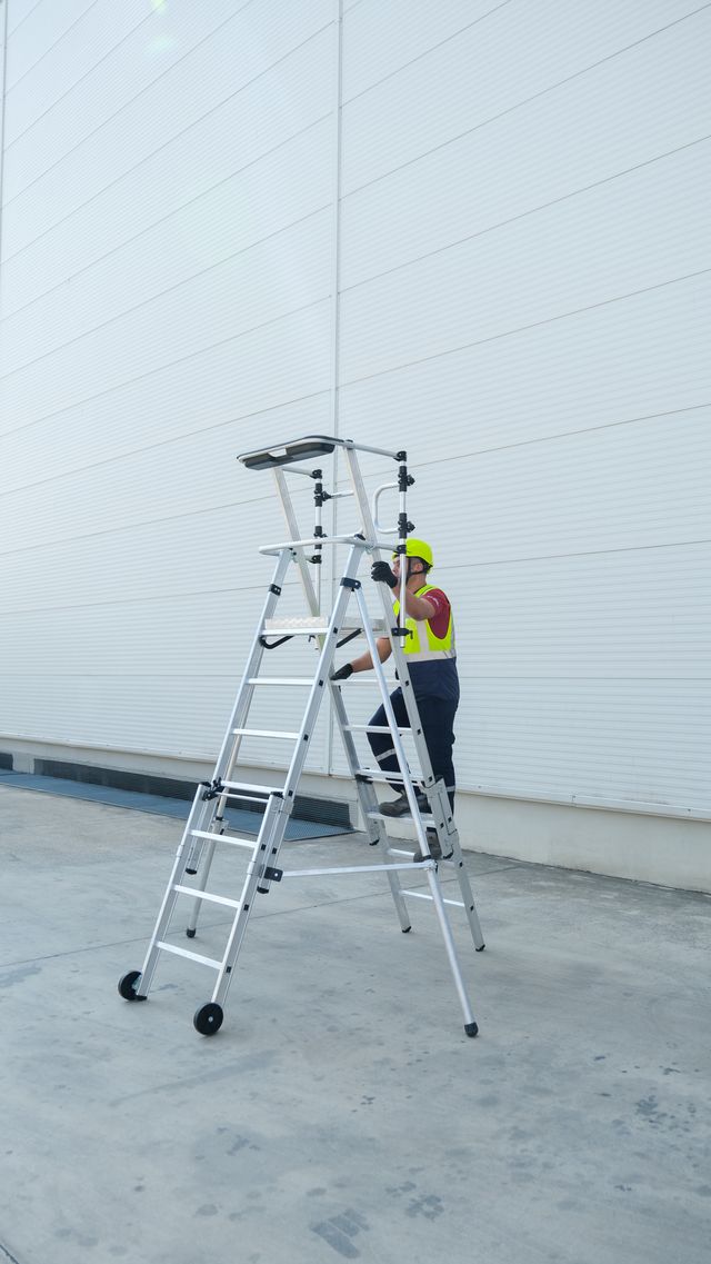 Combining robust construction with advanced safety features and practical design, these professional telescopic platform 4+1 tread and safety gate offer a versatile and dependable solution for anyone working at height. Whether used for industrial maintenance, trade work, or general access tasks, they provide a secure, stable, and user-friendly platform, enabling professionals to work efficiently and confidently in a safe environment. Their thoughtful combination of safety, mobility, and functionality makes them an essential piece of equipment for modern workplaces.