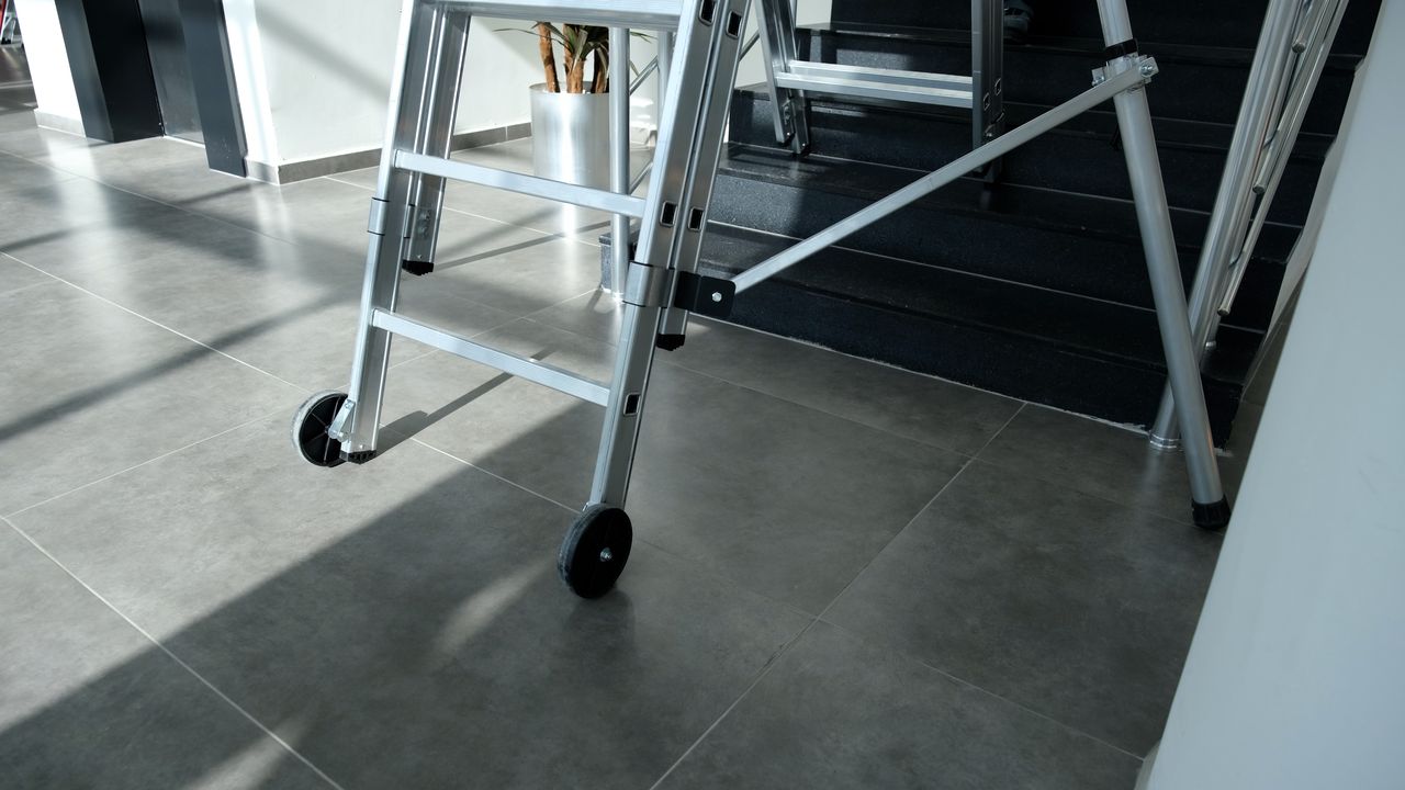 Functionality and convenience have been carefully incorporated into the design. A practical tool tray is positioned at the top of the platform, allowing essential tools to be kept within easy reach while working at height. Mobility is also a key feature: the rear wheels make it simple to reposition the unit without lifting, and the folding mechanism ensures compact storage when not in use, making these telescopic platform steps ideal for busy job sites with limited space.