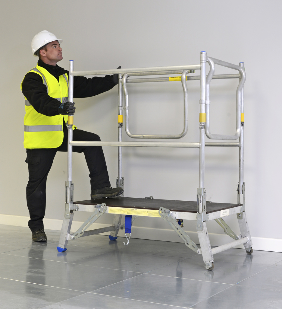Designed and built in the UK, to comply fully with the latest Health & Safety initiatives…Deltadeck is packed with features designed to make site work easy and above all safe. Incorporating 4 individually extending legs with locking wheels, this unit is compact enough to travel from room to room while assembled, yet it boasts a 1100mm long platform.