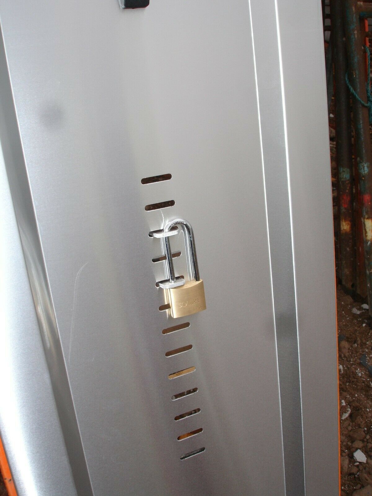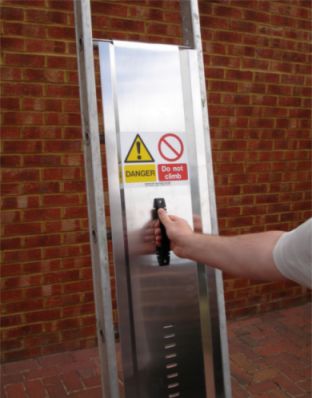 In addition, bespoke sizes of Ladderguard can be manufactured from alternative materials, for example; powder coated mild steel or stainless steel for applications, such as chemical plants, where the use of aluminium is not acceptable… call us for a quote. The Ladderguard is supplied complete with; locking plate and padlock.