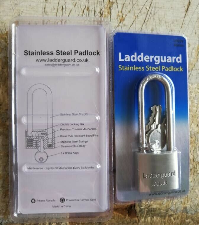 - Increased security, the unit being securely padlocked to the ladder (padlock included)