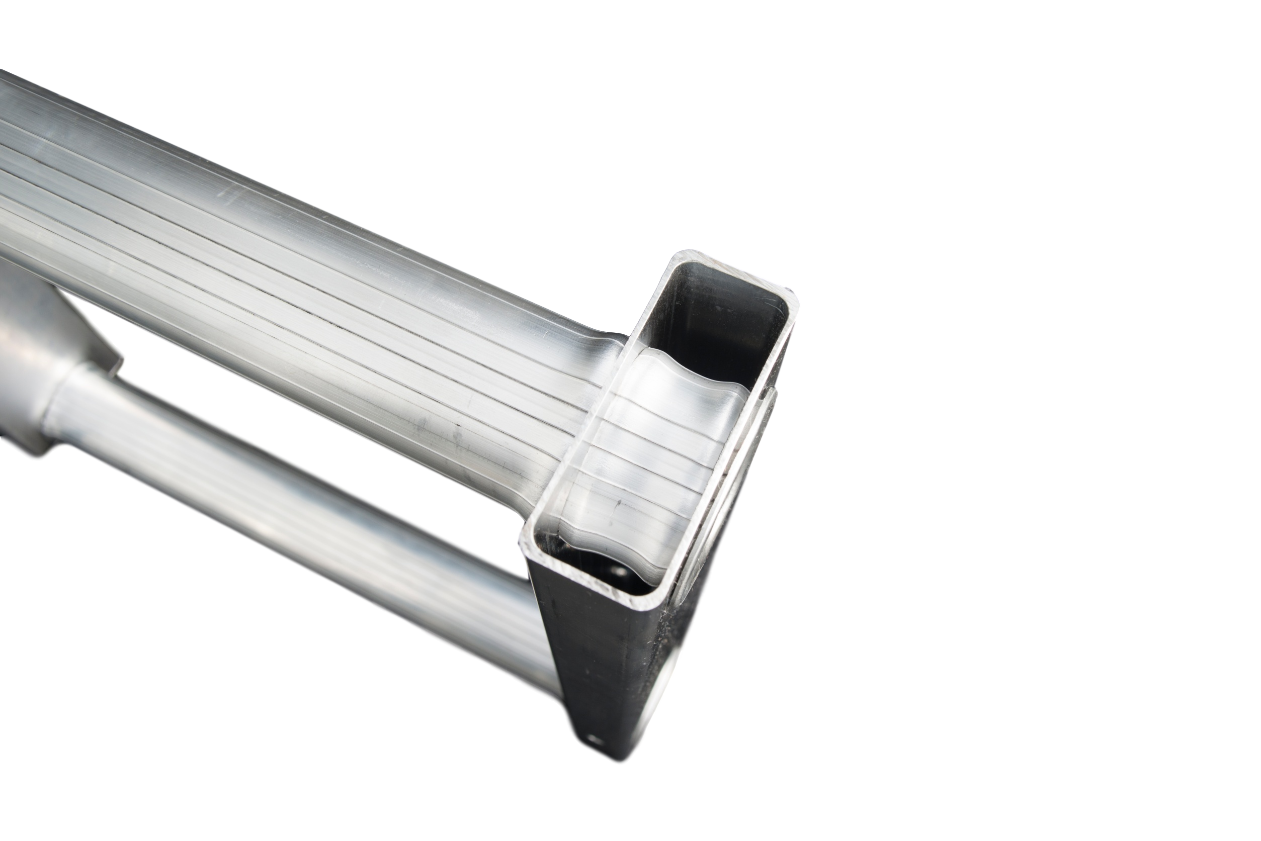 Featuring all aluminium construction, they are lightweight and comfortable to use, with strong box section stiles and wide flat-topped rungs with a deep anti-slip tread pattern. All top brackets and bottom hooks are produced from extruded aluminium for lightness and corrosion resistance and all sections are fitted with non-slip serrated moulded PVC end caps, while the base stabiliser bar sports large anti-slip shoes for ultimate all-surface grip. Safety catches secure the sections together for safe use and transportation, and rungs are spaced at a very comfortable 250mm pitch to ensure climbing is both easy and safe.