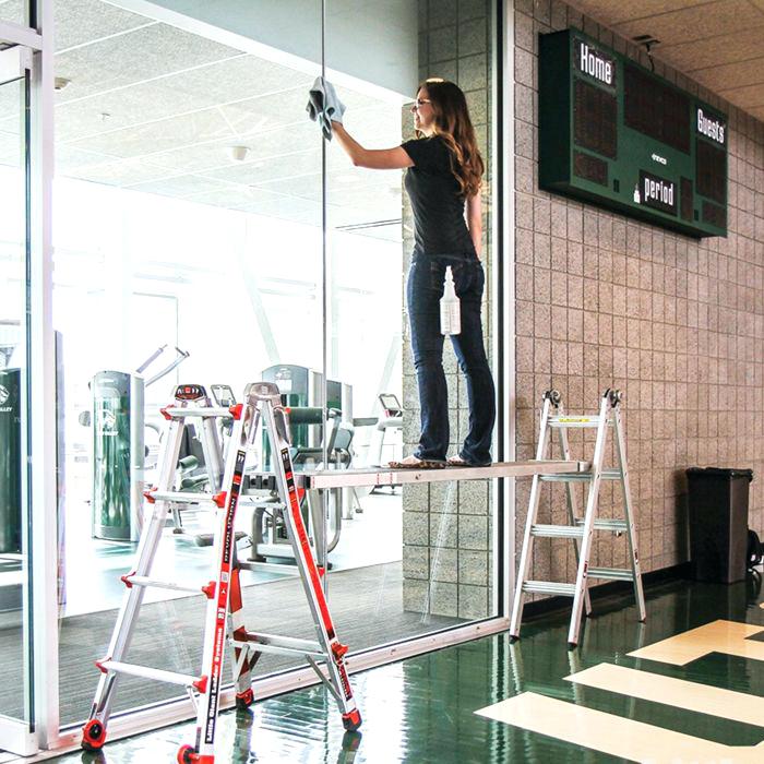 - Work safely from a comfortable standing surface with a wide, slip-resistant footing; and finish big jobs in a fraction of the time.