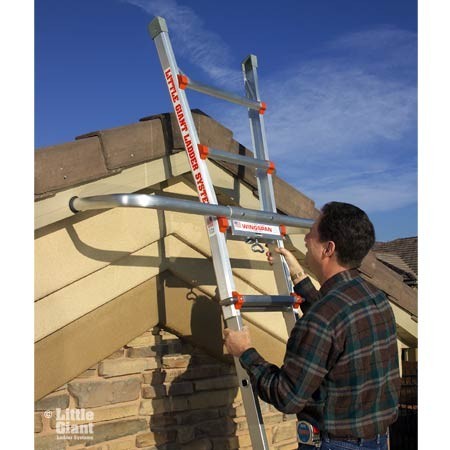 The Wing Span boasts a fixed width of 50 inches and a stand-off of 12 inches for working around windows, rain gutters, bushes, overhangs and other obstacles. The Wing Span’s extra width adds even more versatility and stability to any Little Giant ladder in the extension position.