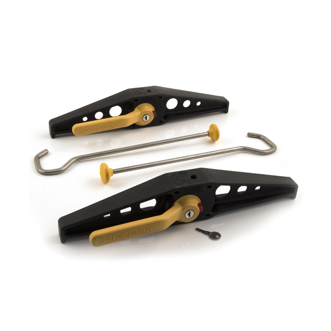 The innovative one touch clamping method ensures that the operation is FIVE times quicker than traditional screw down ladder clamps and each Rhino SafeClamp is supplied complete with two locking keys… the integral lock sees an end to the days of rattling and easily lost padlocks.