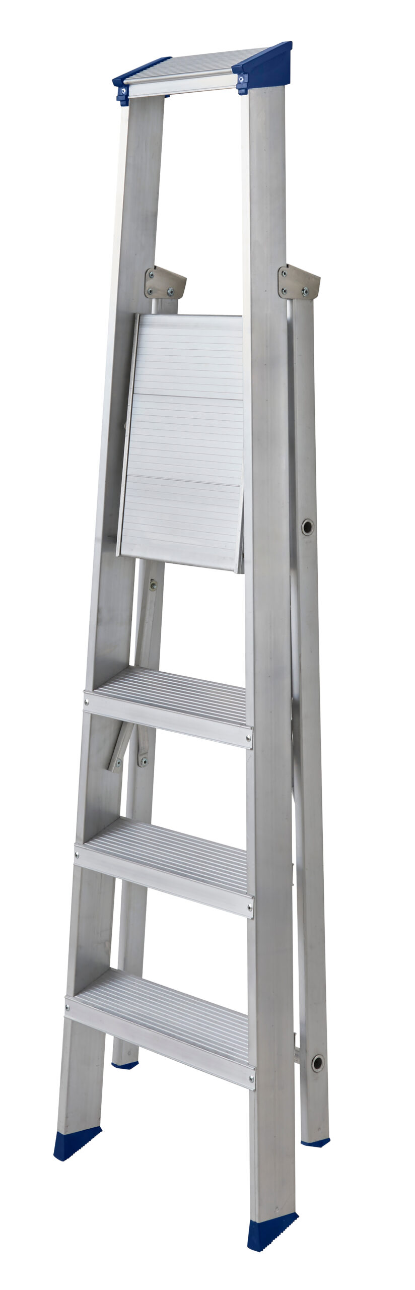 The Werner 4 tread MasterTrade⢠Platform Stepladder is the traditional builder’s ladder engineered using high grade aluminium box section stiles and heavy gauge plastic edge caps for a smoother profile. With a large platform, heavy duty internal spreaders, rear frame cross tubes and large slip-resistant feet, this ladder is exceptional robust and built to last. Approved to the latest EN131 standard. For Professional Use.