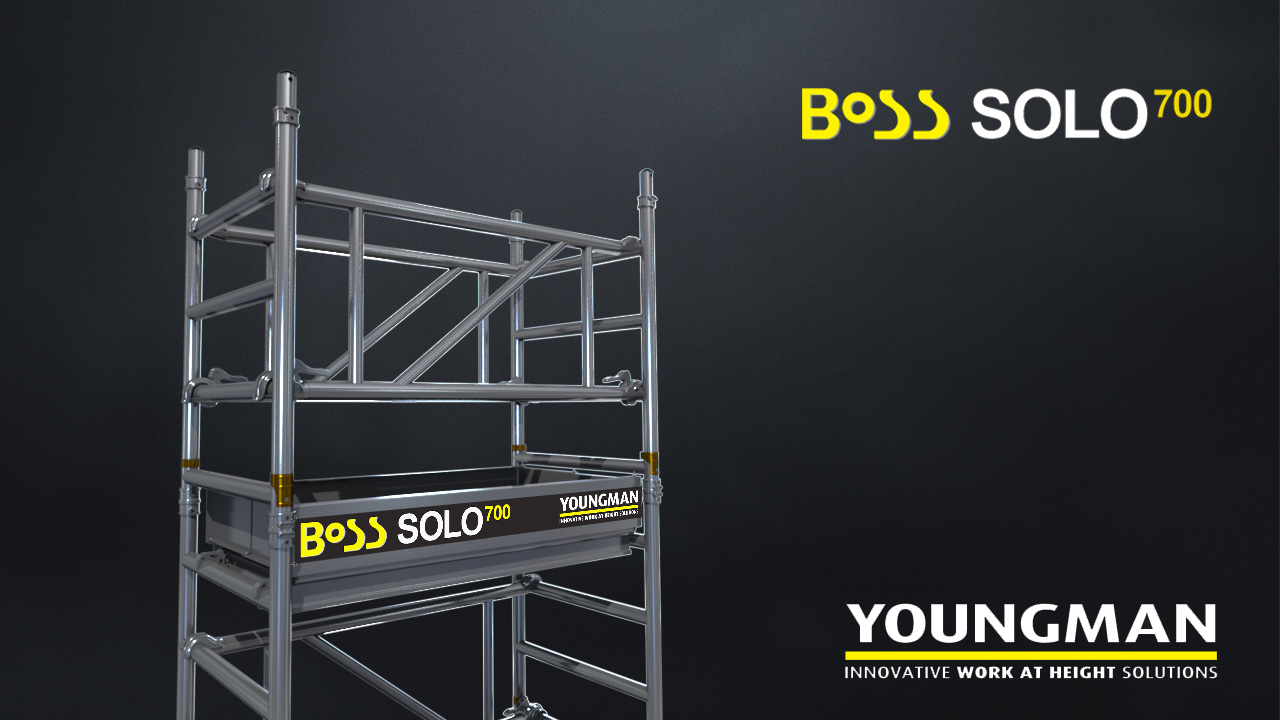 The all NEW Boss Solo 700 from Werner leads the way with yet another ground breaking innovation. A 5.2m working height (3.2m Platform Height)) industrial alloy scaffold tower designed for rapid assembly and use by one person.