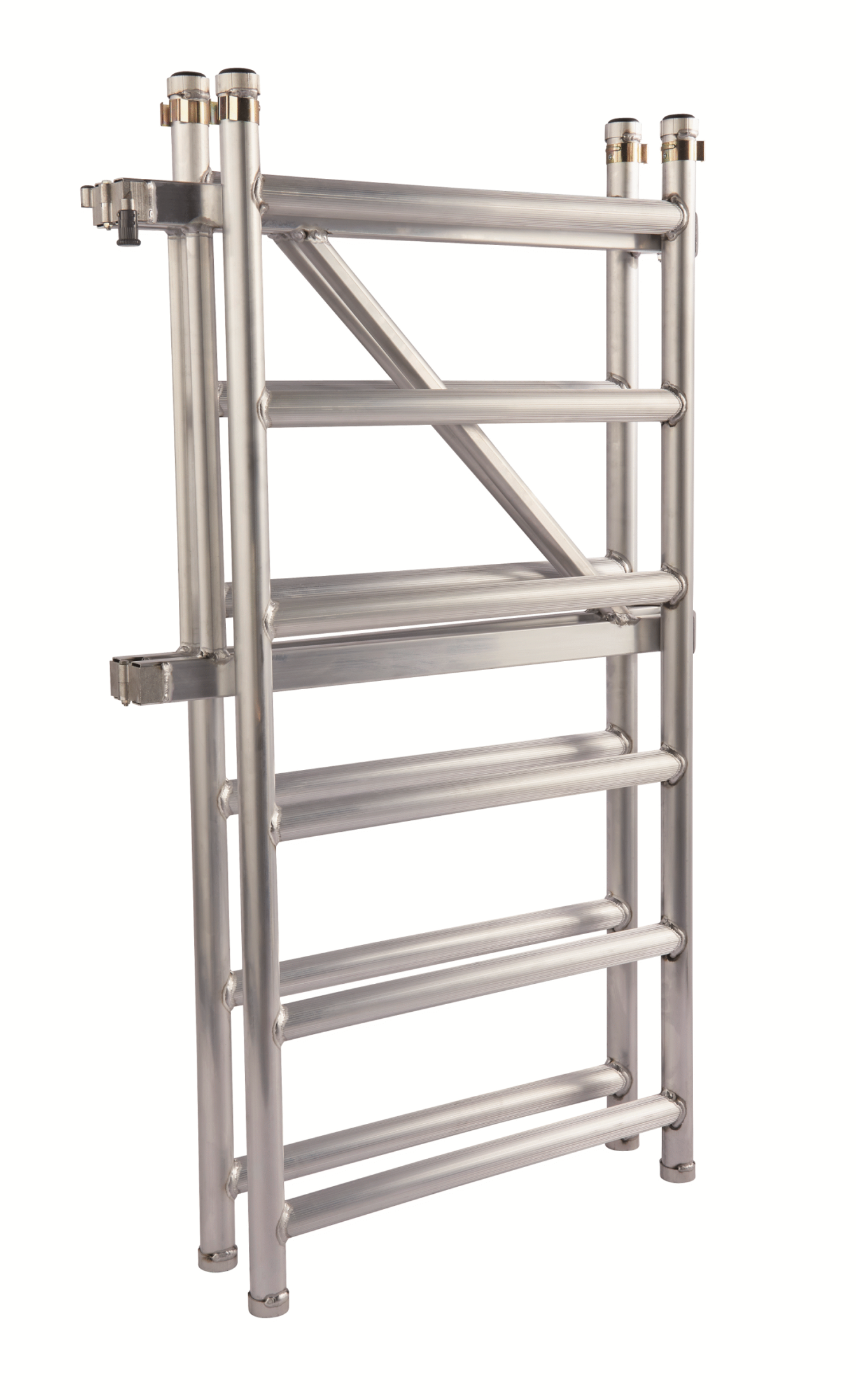 This versatile one-piece fold-out base frame, with a platform, is quick and easy to set up and fits through standard doorways and corridors. This tower system is designed to be built in 2m build intervals for a quick and safe assembly and fully complies to the latest EN1004 safety standard.