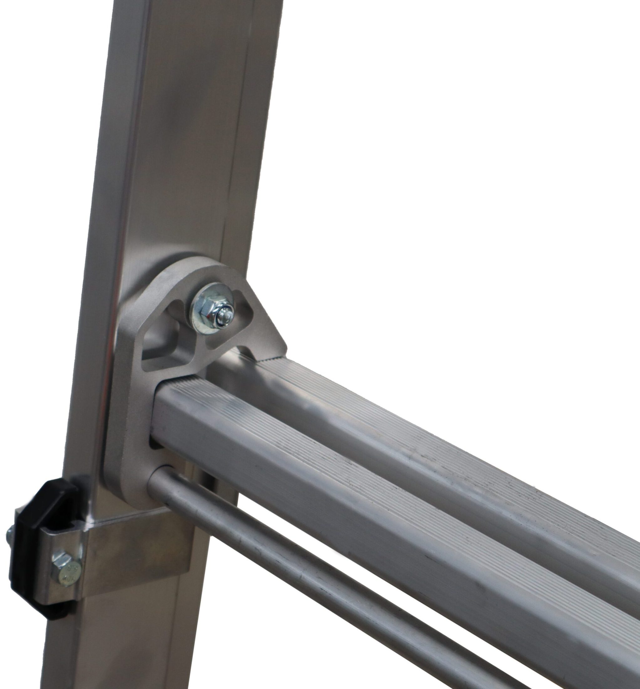 - Extra-large standing platform with robust aluminium toe board for maximum protection