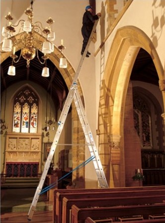 Zarges invented it and many have copied it….we’ve sold them all over the years, but the skymaster remains the choice of professionals worldwide – it’s simply the best – no compromises so no problems – use it as a triple leaning ladder, an A-Frame trestle or a freestanding extending step ladder, top quality German design and build… the ‘BMW’ of ladders! it’s amazing!!